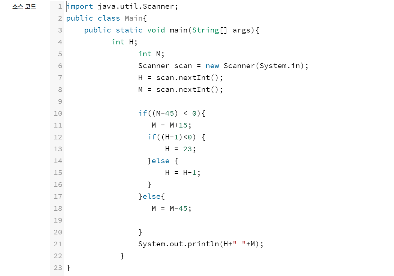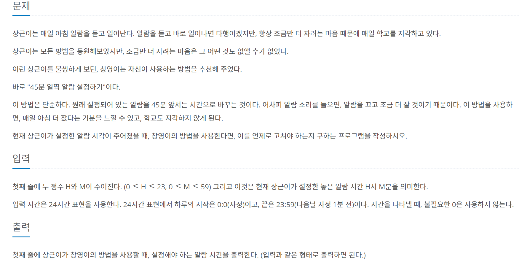 우선 M 에서 45를 뻈을 때 음수가 되는 경우는 M + 15를 해줘야 한다는 원리와