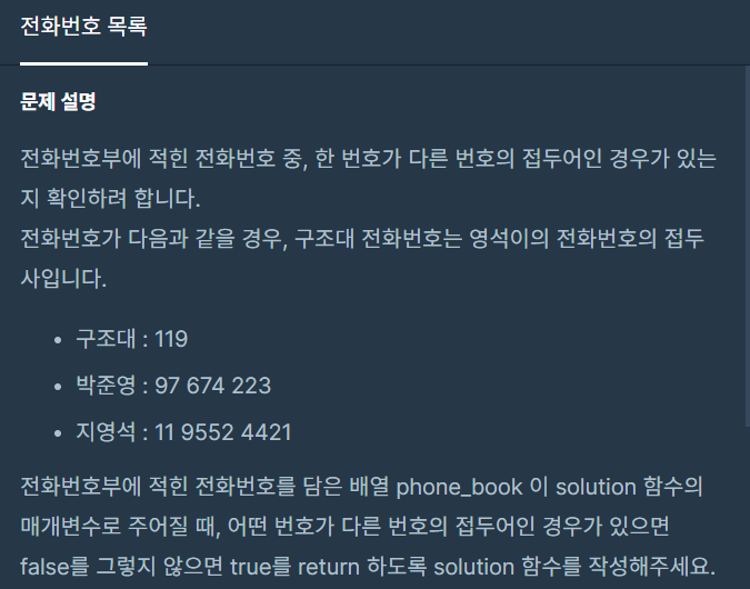 프로그래머스 lv2. 전화번호목록